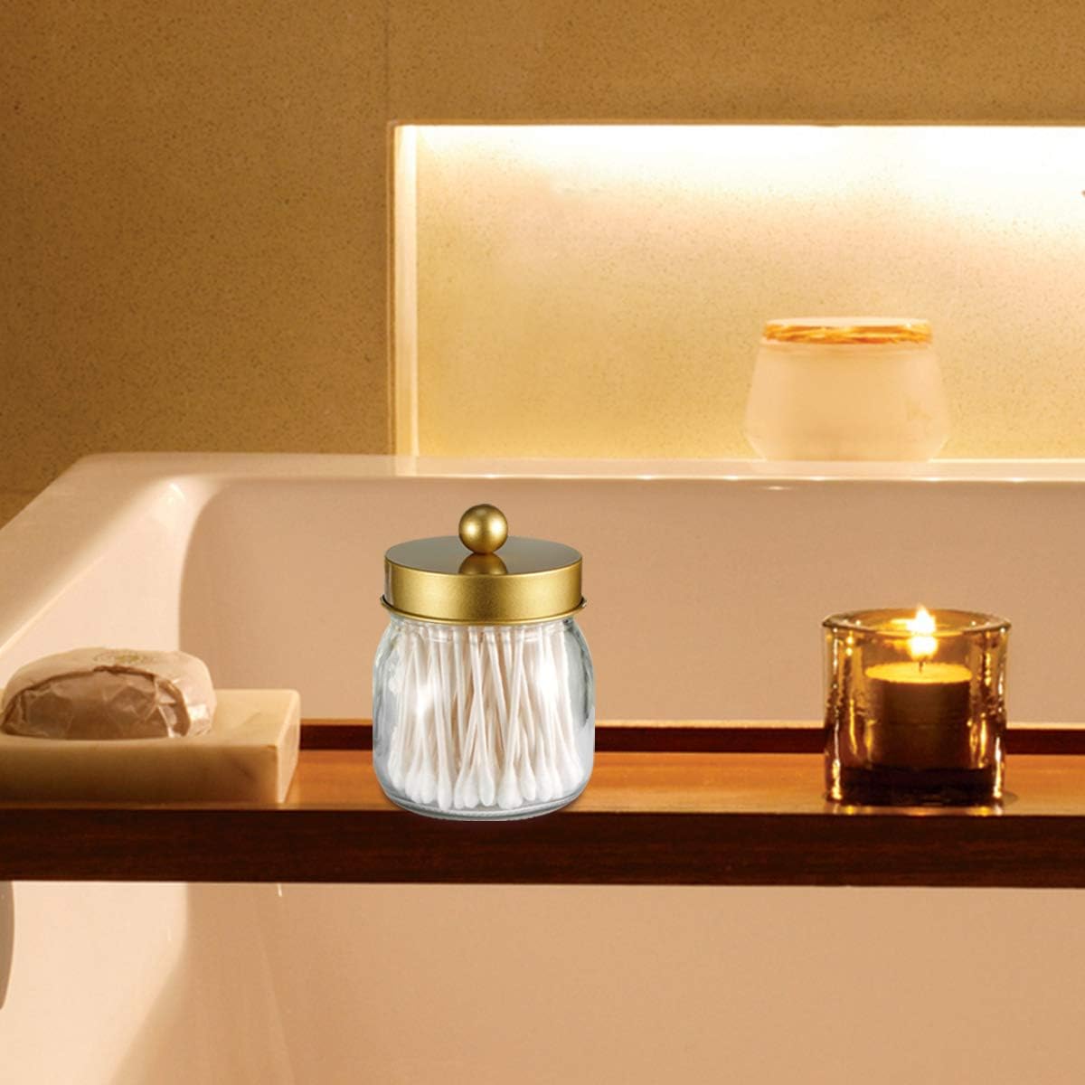 5 out of 5 stars. This bathroom glass canister is perfect for adding stylish functionality to your bathroom. Get it as soon as wed, feb 3. 4.7 out of 5 stars. Get it as soon as thu, may 13. Get it friday, apr 23. Nu steel amber glass with gold colored steel cotton container by tatara. Scspecial acrylic cotton ball and swab holder with lid 2 pieces apothecary jars bathroom canisters for cotton rounds cosmetic pads. Glass vanity canisters with gold lids, mason jar bathroom set (3 pack) brand: Get it tomorrow, jul 12. Ships free orders over $39. Buy bathroom canisters from popular brands and more at best prices from amazon india. 4.5 out of 5 stars.
